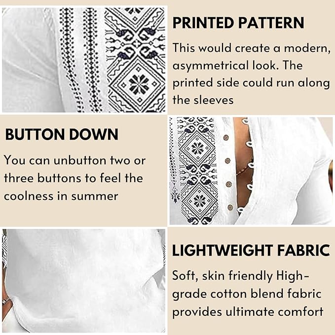 Breathable and Comfortable Cotton Blend: Enjoy the softness and breathability of our premium cotton blend fabric. Stylish Design: Elevate your casual look with a unique one-side Solid/printed pattern for a trendy vibe. Versatile Full Sleeve: Perfect for any season, the full sleeves provide added style and comfort. Casual Elegance: Strike the right balance between comfort and style with this casual short kurta. Perfect for casual, festive, holiday wear, Wedding, Date night, Party, Formal. Easy Maintenance: Machine washable for convenient care, ensuring your kurta stays fresh and vibrant.