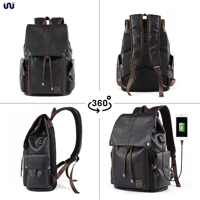 Walkent Spruce Laptop Bags ensures safety of your gadgets, laptops, tablet and other stuff inside your bag with waterproof outer material. The Flap & Drawstring closure providing extra layer of water resistance Spruce Laptop Bag is made with high-quality Vegan leather and a water-resistant and scratch-resistant outer, this backpack is stylish and durable for daily use With multiple compartments, including cushioned laptop compartments and anti-theft pockets, you can easily carry all of your daily necessities Mulitple Features like External USB Port, Side Pockets for Bottle / Umbrella, Trolley Strap for Easily attching to luggage while travelling, Cushioned Shoulder Straps and Padded Back for easy of carry and more Whether you're heading to the office, college, or on a trip, the Spruce backpack has you covered. stylish backpack for men and women is a head turner where you go