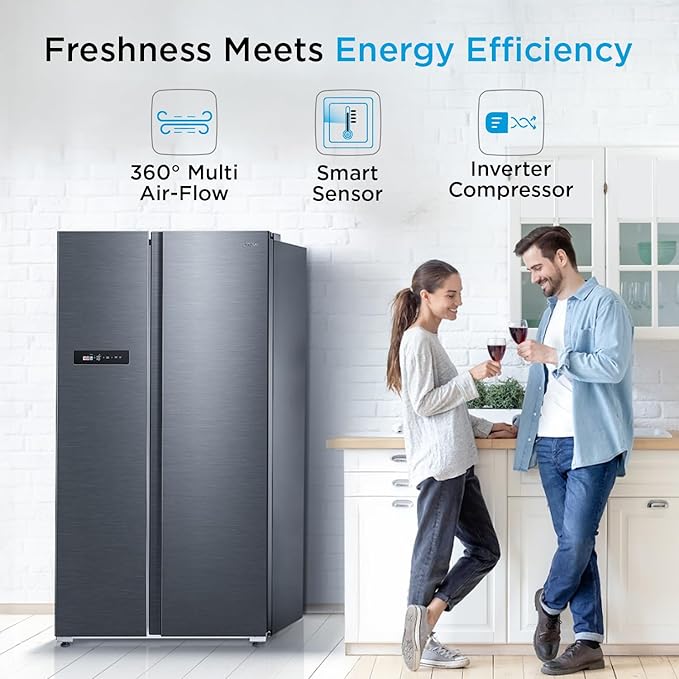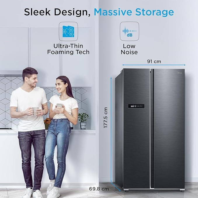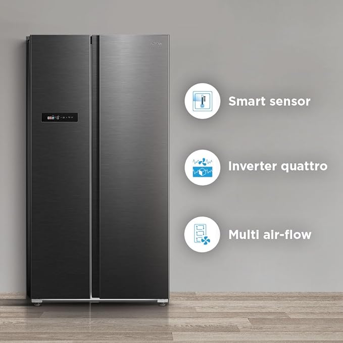 Product Dimensions 69.8D x 91W x 177.5H Centimeters Brand Midea Capacity 592 litres Configuration Side-by-Side Colour JAZZ Black with Wif