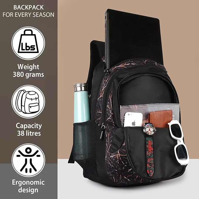 SPACIOUS & ORGANIZED – Features 3 large compartments and multiple pockets to keep your laptop, books, and accessories well-organized. MULTIPURPOSE BACKPACK – Whether a student, professional, or traveller, this backpack is designed to fit seamlessly into your lifestyle. SIDE POCKETS FOR EXTRAS – Carry your water bottle, umbrella, or small accessories easily with the convenient mesh side pockets.