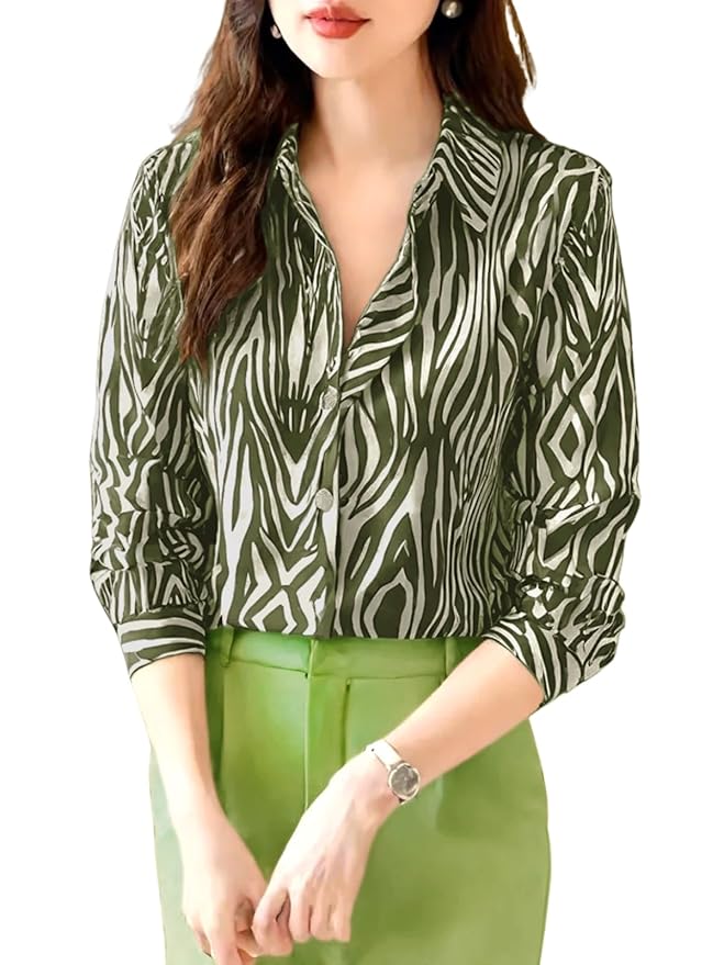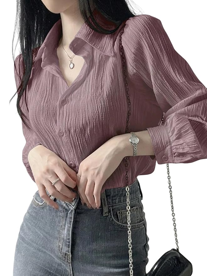 Leriya Fashion Women's Crepe Regular Fit Top Korean Style Long Sleeve Oversized Button Down