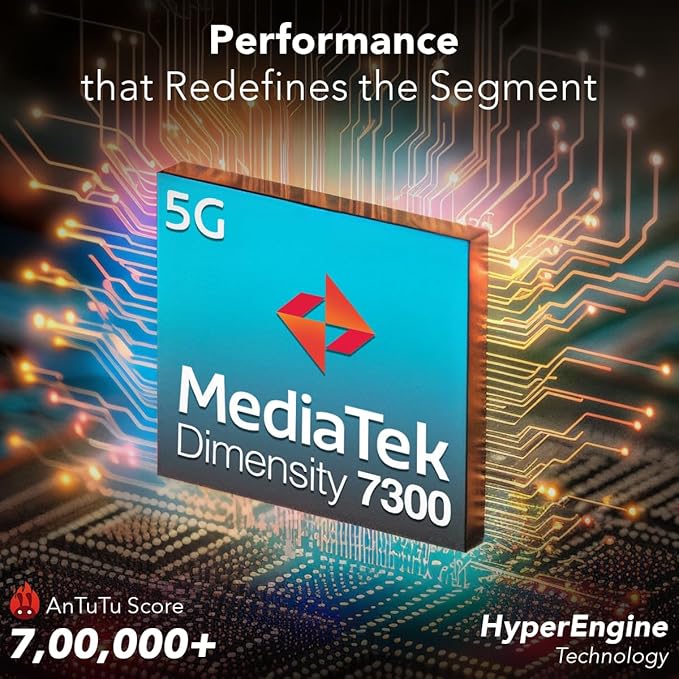 | Upto 12GB Expandable RAM with 128GB UFS 3.1 storage for ultra-smooth performance and lightning-fast app loading. Powerful MTK D7300 processor built on 4nm technology | |