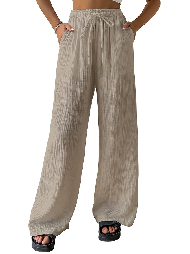 High Waist Polycotton Trousers for Women – Flared Parachute Pants with Side Pockets | Casual Travel Cargo Pants
