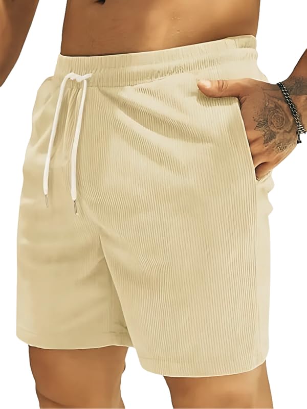 SMOWKLY Men's Premium Polycotton Casual Ribbed Shorts || Elastic & Drawstring Waist with 2 Pocket || Loose Fit Lightweight Bermuda Perfect for Workout, Beach & Travelling
