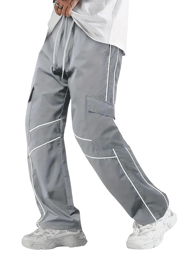 Korean Style Track Pants for Men – Loose Fit Lycra Cargo Joggers | Trendy Gym & Streetwear Bottoms with Utility Pockets