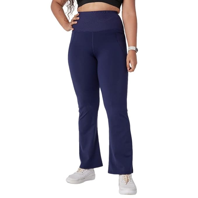 BlissClub Ultimate Flare Pants for Women Above 5'5 ft Tall | Ribbed Waistband, 4 Pockets | High Waist Trousers and Formal Pants for Office wear