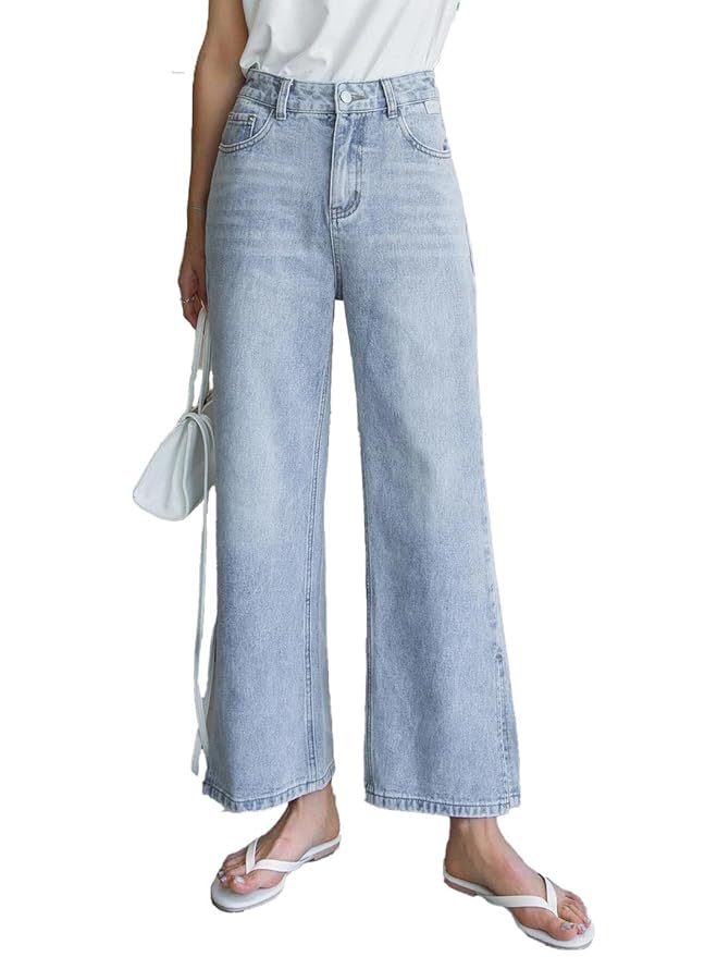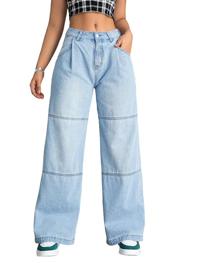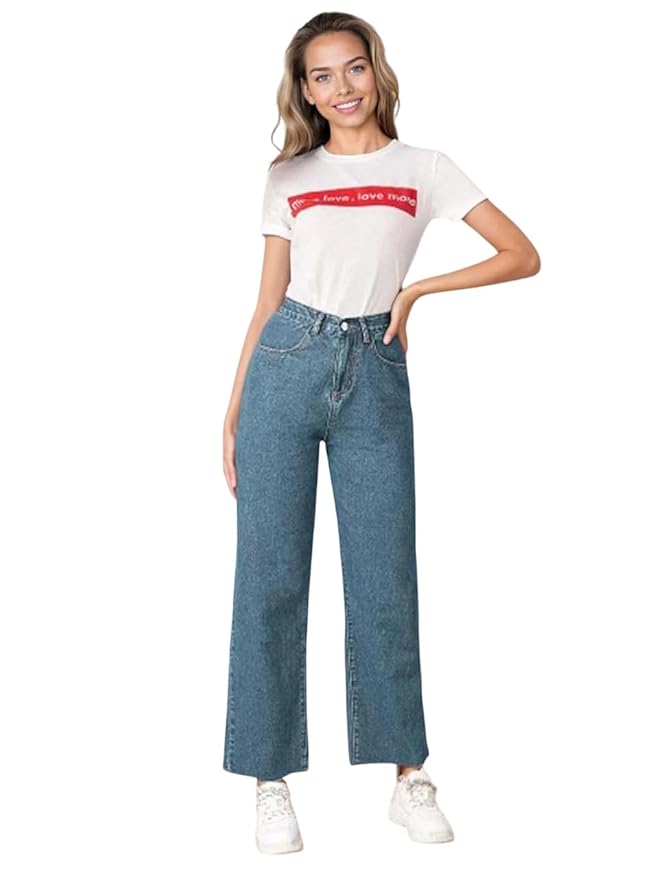 Women’s High Waist Wide Leg Button Coin Pocket Straight Fit Jeans Stylish Regular to Plus Size Fit Denim Jeans for Women