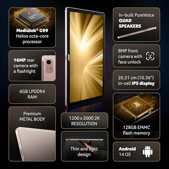 Brand acer Model Name Acer Iconia Tab Memory Storage Capacity 128 GB Screen Size 10.36 Inches Display Resolution Maximum 2000x1200 Pixels