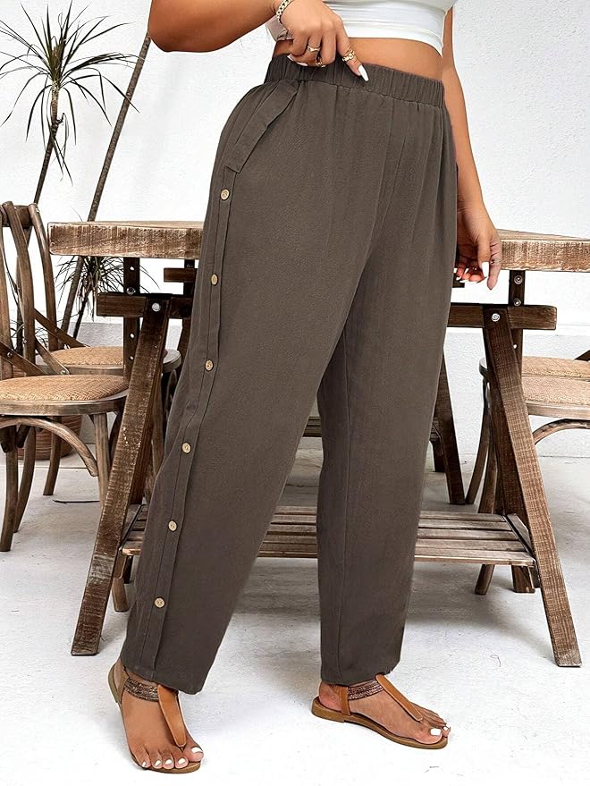 High Waist Polycotton Trousers for Women – Flared Parachute Pants with Side Pockets | Casual Travel Cargo Pants