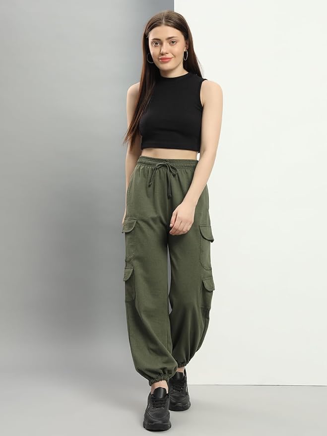 Fabric: Bio enzyme wash Cotton Blend french terry fabric with sweat absorbing, anti baterial capabilities. Cargo-Style Pockets : These joggers feature 6 cargo pockets, adding a touch of utility and ample storage space for your essentials. Easily carry your phone, wallet, keys and more without the need for a bag. Occassion: Perfect for gym, Walking, Jogging, Sports and Casual wear Features: Elasticated waistband and bottom. 2 Front sland pockets and 2 cargo side pockets at each leg. Mid rise. Style: Pair it with a t-shirt or crop top for a relaxed casual look