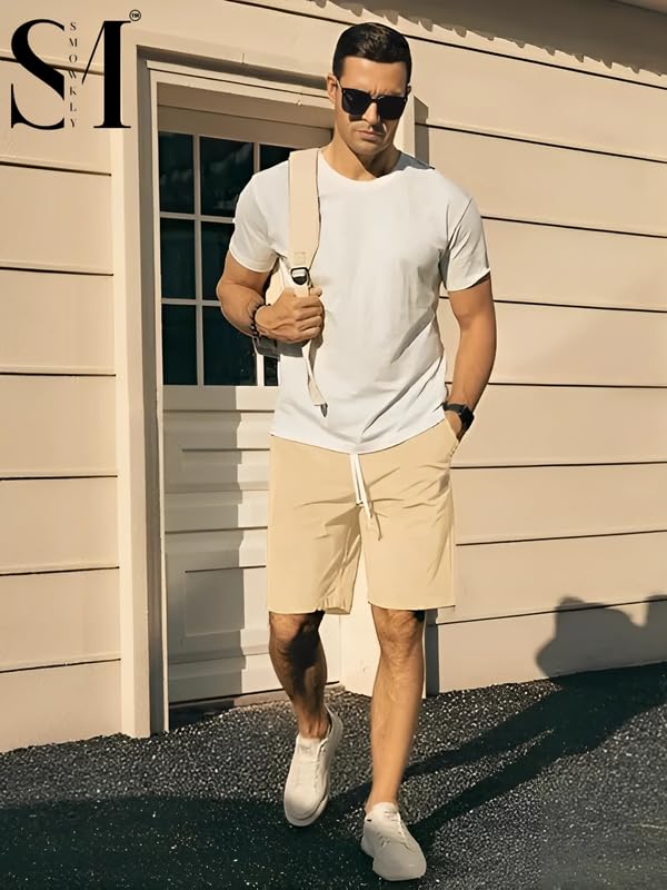 ? MATERIALS: Men's Shorts Are Made of 95% Polycotton & 5% Spandex, Soft and Skin-friendly. High Quality Fabric Give You a Comfortable Wearing Experience. ? DESIGN: Mens Drawstring Shorts With Pockets. Two Side Pockets Large Enough to Hold Your Phone and Wallet. Elastic Waistband and Drawstring Closure, Ensure a Snug Fits for You. ? RELAXED FIT: Designed for a Loose, Baggy, and Comfortable Fit, These Shorts Provide Ample Freedom of Movement, Making Them Ideal for Workouts, Sports, and Casual Wear. ? OCCASIONS: Mens Casual Shorts in Solid Colored, Stylish and Versatile. Perfect Choice for Workout, Shopping, Vacation, Walking, Running, Beach and Street Daily Wear in Summer. ? COLOR DECLARATION: There Might Be Slight Color Variation Between the Actual Product and Image Shown on the Screen Due to Photoshoot Lighting.