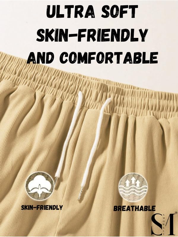 SMOWKLY Men's Premium Polycotton Casual Ribbed Shorts || Elastic & Drawstring Waist with 2 Pocket || Loose Fit Lightweight Bermuda Perfect for Workout, Beach & Travelling