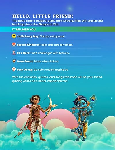 Key Features: ? Vivid Illustrations – Bright, colorful pictures bring the Bhagavad Geeta’s stories to life. ? Simplified Language – Translated shlokas and concepts made easy for young readers. ? Inspiring Lessons – Teaches timeless values like honesty, responsibility, and respect for all living beings. ? Fun Activities – Activities that help children engage with the concepts they learn. ? Ideal for Home Learning – Perfect for parents and teachers who want to introduce spiritual values at home. ? Perfect for Gifting – A meaningful gift for birthdays, festivals, and special occasions. ? Key Benefits: Early Exposure to Hindu Philosophy – Introduces children to the principles of Hinduism in a fun and relatable way. Fosters Moral Development – Children learn how to make decisions based on ethical values such as kindness and duty. Boosts Creativity – Encourages children to connect with the material through activities and vibrant visuals. Strengthens Parent-Child Bonds – An excellent resource for family reading and discussions. Cultivates Mindfulness & Gratitude – Aids in building a positive mindset from an early age. ? Why Choose Kiddos Intellect? At Kiddos Intellect, we prioritize quality, creativity, and meaningful content. Our goal is to make learning both fun and impactful. This Kids' Bhagavad Geeta does more than just teach stories — it instills values, encourages reflection, and nurtures spiritual growth. ? With years of experience in crafting engaging educational materials, Kiddos Intellect stands out for offering books that enrich young minds with cultural, spiritual, and moral wisdom that they can carry throughout their lives.